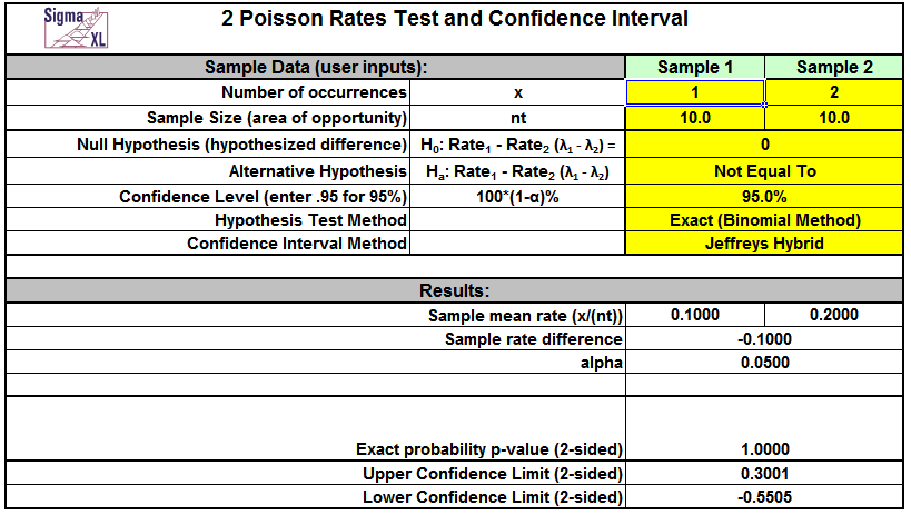 Statistical Templates > 2 Poisson Rates Test and Confidence Interval to