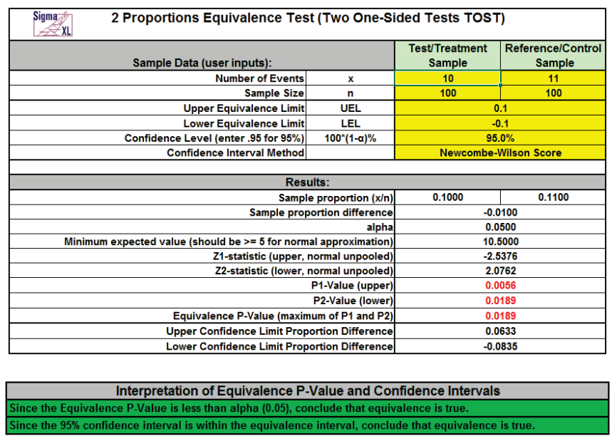 Basic Statistical Templates 2 Proportions Equivalence Test