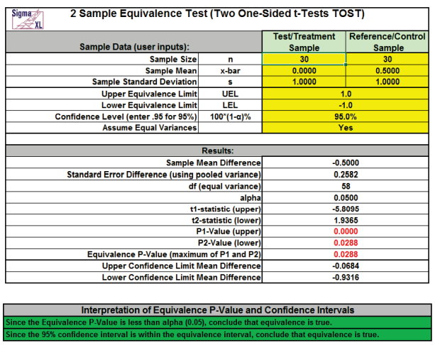 Statistical Templates > 2 Sample Equivalence Test (Compare 2 Means) to