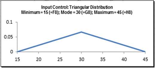 and specify cell G4 containing the mode (most likely) parameter value = 10.