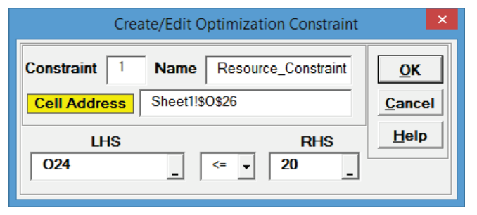 of Total Resources <= 20. Management requires a minimum total project savings of $1 Million