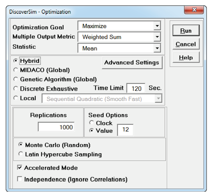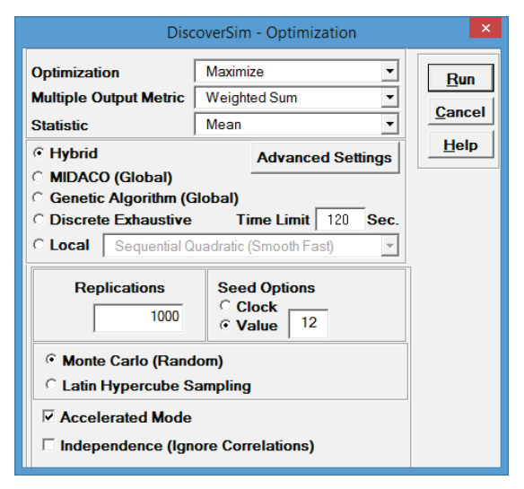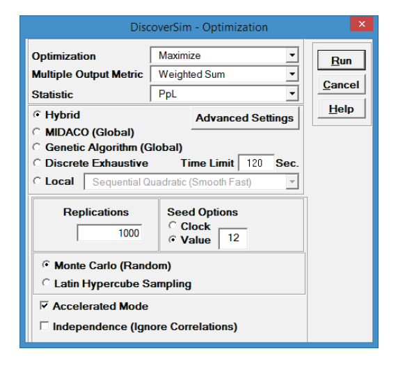 selected, 1 denotes project selected). DiscoverSim will use stochastic global