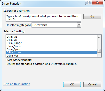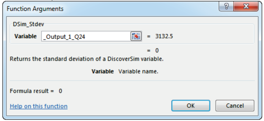 The DSIM function formula is now in cell = DSim_Stdev(_Output_1_Q24)