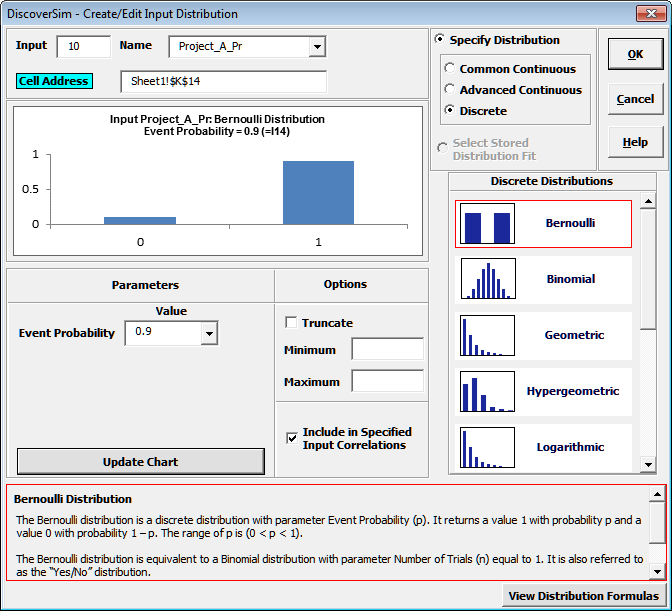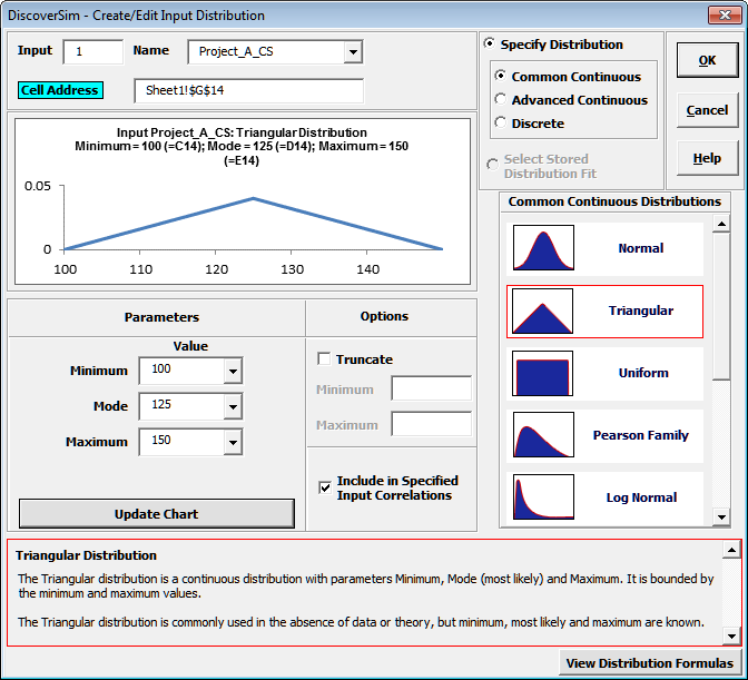 DiscoverSim Input Distributions will simulate the variability in the cost