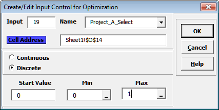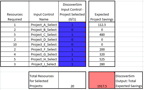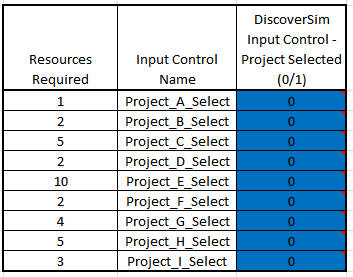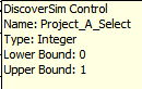 DiscoverSim Input Controls (Discrete) will be used to select the project (0,1)