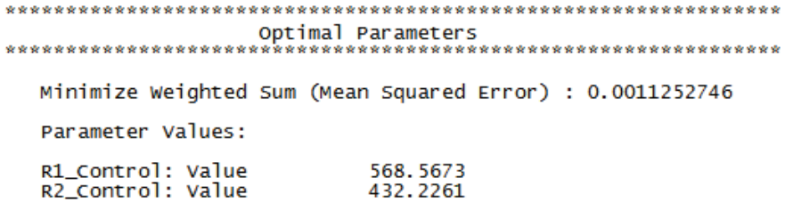 (Note that if we did not have the above nominal mean values for control factors available as starting values, we would use the mid-point of the minimum/maximum to start the optimization. The final optimization result would be the same in either case because the optimizer is global not local.)