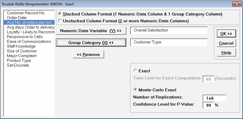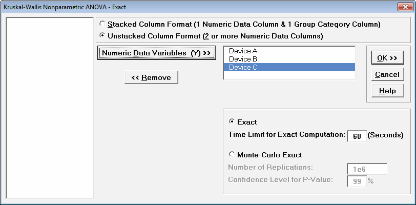 Nonparametric Tests - Exact > Kruskal-Wallis - Exact.