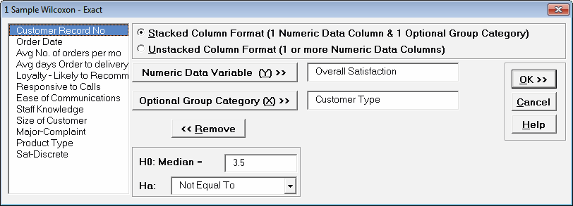 Overall Satisfaction, click Numeric Data Variable (Y)