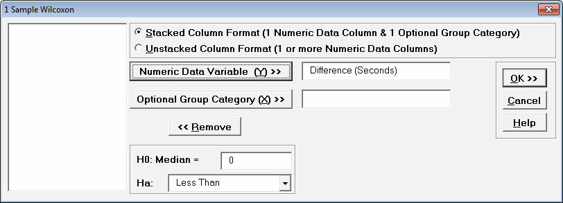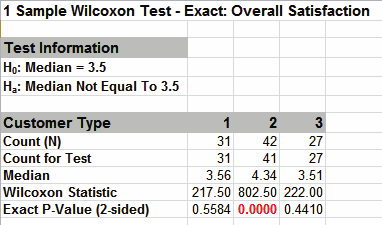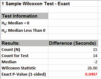 SigmaXL > Statistical Tools > Nonparametric Tests Exact > 1