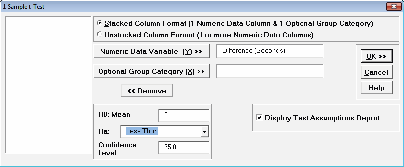 Tools > 1 Sample t-Test & Confidence Intervals. If