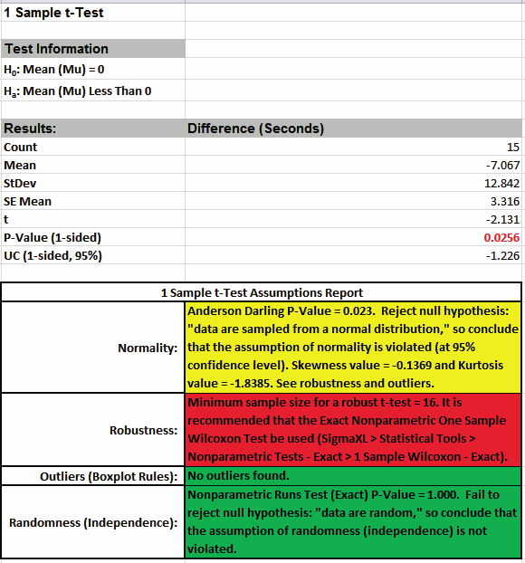 SigmaXL > Statistical Tools > Nonparametric Tests > 1 Sample