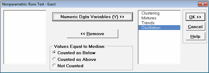 Nonparametric Tests Exact > Runs Test Exact. If necessary, check